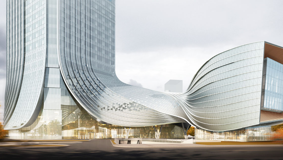 本工程位于珠海十字門中央商務(wù)區(qū)橫琴片區(qū)離岸金融島8號地塊,建筑面積約219220平方米,其中地上建筑面積約138531平方米,地下建筑面積約80689平方米。地上69層、地下4層。主要建設(shè)內(nèi)容為甲級寫字樓、配套會展功能、商務(wù)公寓及商業(yè)服務(wù)設(shè)施。該項(xiàng)目取“蛟龍出海”的設(shè)計理念,裙樓部分體型尤其洄還扭轉(zhuǎn)、動感萬千;材料層次多、交錯復(fù)雜,設(shè)計及施工難度極大。